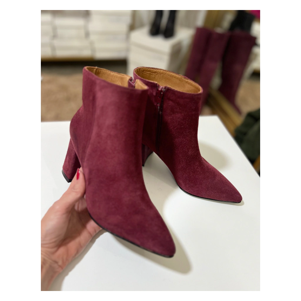 Realizadas en gamuza y forradas en badana. Cierre del lado interno al tono.