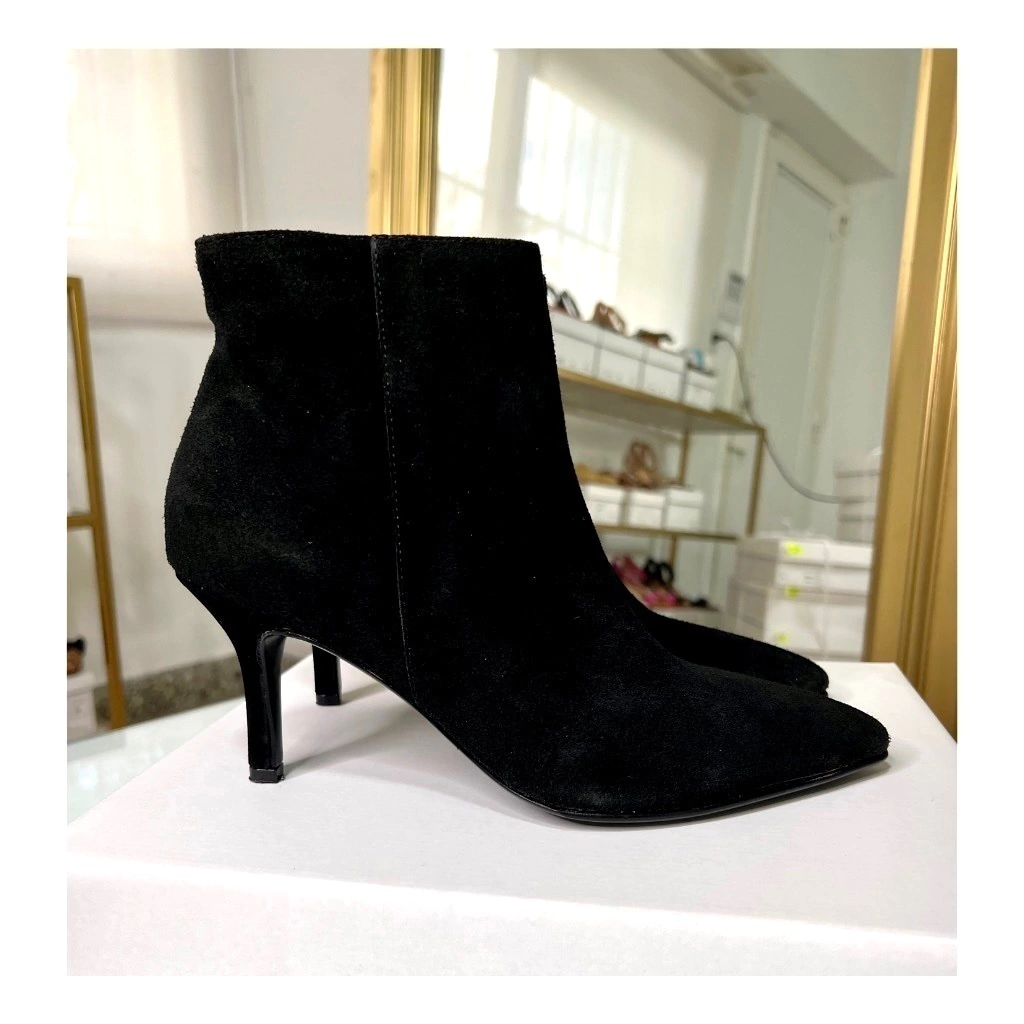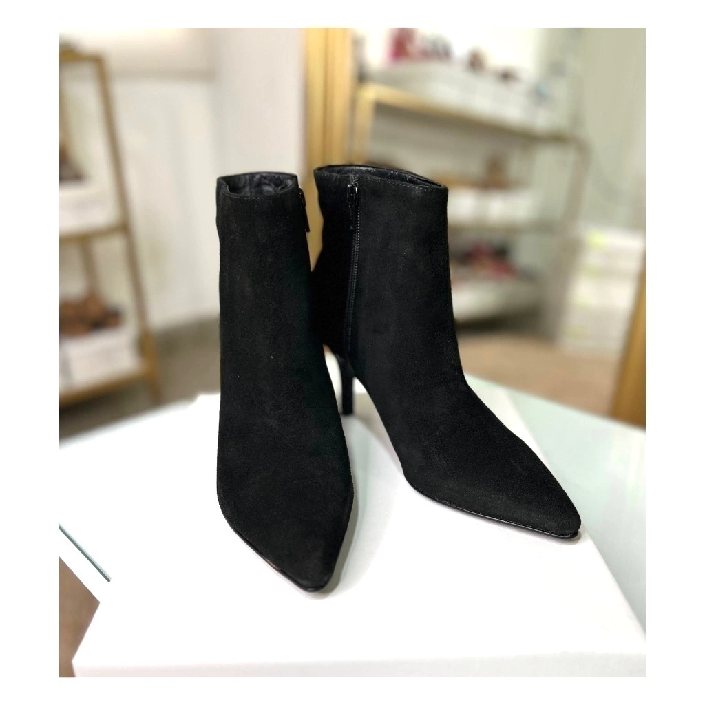 Realizadas en cuero vacuno gamuzado negro y forradas en badana. Cierre del lado interno al tono.
