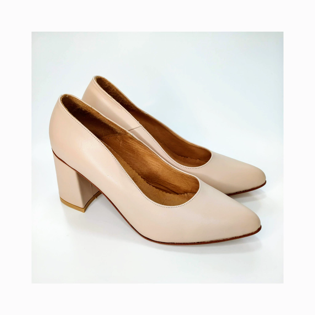 Estiletos realizados en cuero vacuno nude rosado y forrados en cuero.